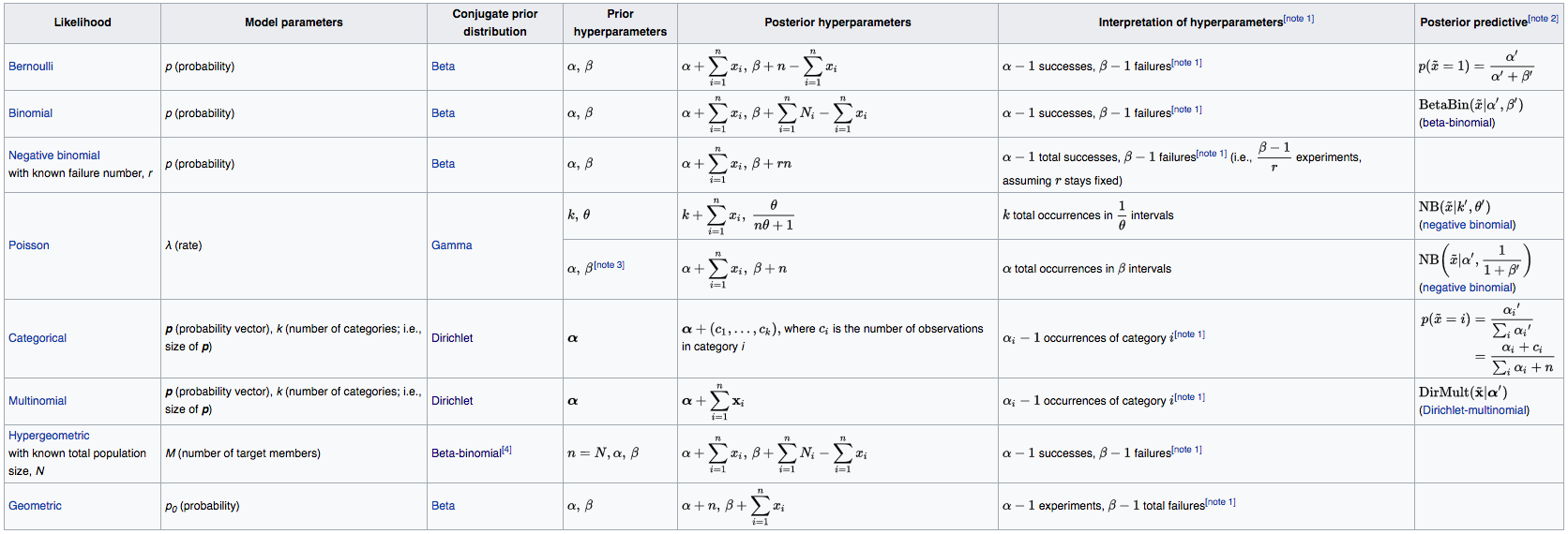 Ces priors permettent de calculer analytiquement la distribution postérieure.
